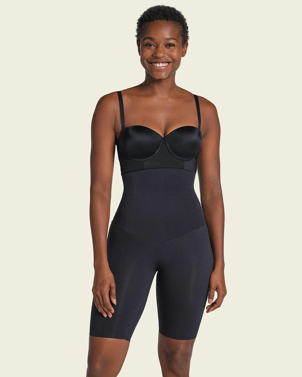 - ¡Una figura estilizada en segundos! Moldea tu silueta desde la base del busto hasta la mitad de las piernas.